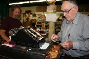 On a recent trip to Northern Arkansas we visited this Dry Goods Store, which was like walking into a museum. Although this guy was able to successfully sell Tim a nice pair of leather gloves, this register setup is not ideal for the average retail store. I did however enjoy watching the old machine work!